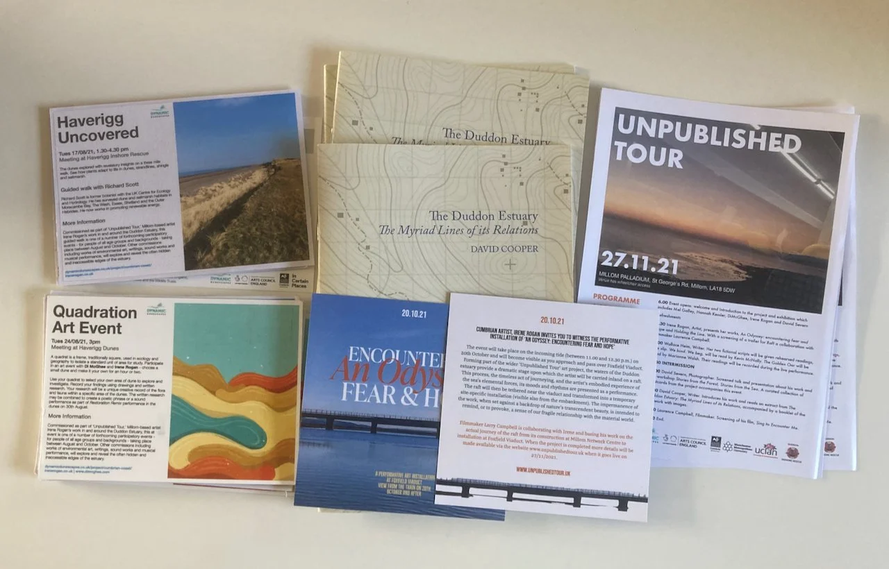 With Irene Rogan, I also co-produced the Unpublished Tour launch event, which took place on November 27th at Millom Palladium, Cumbria, and designed project materials, including David Cooper’s zine, The Duddon Estuary: The Myriad Lines of its Relations, which was produced to coincide with the November 27th launch event.